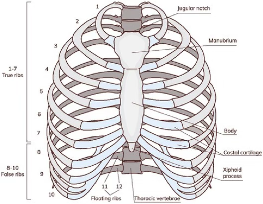 Kaburgalar; omurga, sternum, kostokondral bileşke ve diyafram ilişkisiyle birlikte toraksın dinamik bir iskeletini oluşturur. Göğüs kafesi; nefes alıp verme sırasında hacim değiştirir, diyafram hareketiyle koordineli çalışır ve interkostal aralıklar üzerinden nörovasküler yapılarla iç içedir.