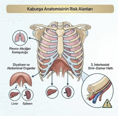 Günlük pratikte kaburgayla ilgili ciddi bir problem olduğunda (travma, pnömotoraks şüphesi, hemotoraks, toraks içi yaralanma riski), hastayı yöneten ekip “göğüs cerrahisi” refleksine sahiptir. Çünkü kaburga, internal organ komşuluğu nedeniyle ortopedik bir kemik gibi ele alınamaz.